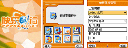 “快樂e行”預(yù)裝在手機中的存儲卡中,可直接安裝到手機的應(yīng)用菜單欄里,點擊圖標(biāo),就可以直接進(jìn)入首頁。圖形化的操作按鍵、簡明的文字提示、順暢的操作流程,人性化的設(shè)計讓機票預(yù)訂變得不再麻煩。