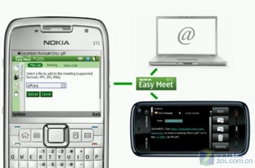 北京時(shí)間2009年4月16日,諾基亞發(fā)布Easy Meet,這是一款移動設(shè)備共享工具,可以實(shí)現(xiàn)移動設(shè)備與移動設(shè)備或PC之間的實(shí)時(shí)共享,并且所有的共享并不需要另外下載軟件,僅用手機(jī)自帶的瀏覽器就可實(shí)現(xiàn),非常方便。用戶僅需正確的輸入Easy Meet的地址鏈接,就可成功的創(chuàng)建連接,并向每位連接人發(fā)送電子郵件或者SMS,僅需一鍵確認(rèn),每位參與人就可通過Easy Meet查看共享文件,參與互動或者直接使用別的設(shè)備上的內(nèi)容。