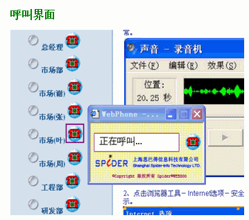 WCS3050主要提供Web點(diǎn)擊呼叫功能,當(dāng)用戶在瀏覽企業(yè)網(wǎng)站或網(wǎng)絡(luò)廣告的時(shí)候,通過點(diǎn)擊該企業(yè)的聯(lián)系電話,甚至企業(yè)標(biāo)識(shí)等其它標(biāo)志,直接下載安裝特定的控件后就可以通過電腦打電話到該企業(yè)服務(wù)中心,大大方便了用戶對(duì)企業(yè)及其產(chǎn)品的進(jìn)一步了解,更加促進(jìn)了企業(yè)的市場(chǎng)銷售和宣傳。