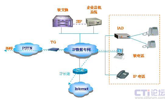 終端可以通過(guò)IAD將普通電話接入,可以是IP電話,還可以是軟電話。軟終端尤其適合出差在外的人員,只要電腦聯(lián)網(wǎng)即可撥打所需電話,通話資費(fèi)均為0。