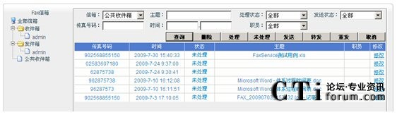 打開瀏覽器,輸入WebFax管理網(wǎng)站的地址,登陸,然后通過(guò)這個(gè)網(wǎng)站,查看收發(fā)傳真的狀態(tài),及接收傳真的圖像。可以進(jìn)行查詢、下載、發(fā)送、轉(zhuǎn)發(fā)、重發(fā)和刪除傳真。