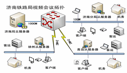 濟南鐵路局規(guī)模龐大,機構(gòu)復(fù)雜,由于鐵路的特殊性,一個部門或機構(gòu)往往分布在鐵路沿線的數(shù)十個站段。因此,溝通和會議的模式也是多種多樣的,會議使用單位較多而且頻繁,這就對網(wǎng)絡(luò)視頻會議系統(tǒng)提出了很高的要求,即能滿足當?shù)氐臅h,又要能夠滿足跨區(qū)域的會議。