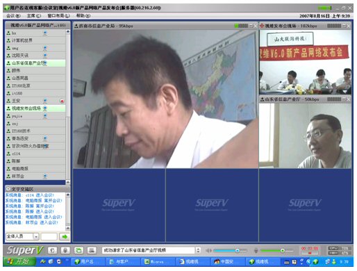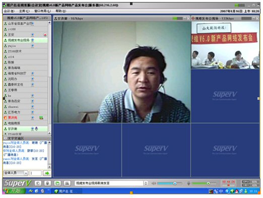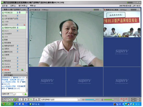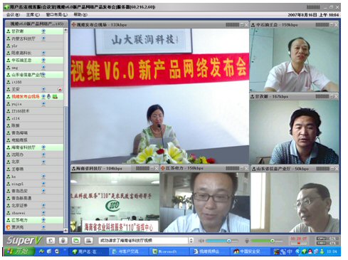 2007年8月16日,視維視頻會議V6.0新產(chǎn)品網(wǎng)絡(luò)發(fā)布會在美麗的泉城濟(jì)南舉行,山東省信息產(chǎn)業(yè)廳、濟(jì)南市信息產(chǎn)業(yè)局的領(lǐng)導(dǎo)、山東省電信等上級主管部門領(lǐng)導(dǎo),視維產(chǎn)品新老用戶和有視頻會議需求的潛在客戶,國內(nèi)外合作伙伴,IT168、中國計(jì)算機(jī)報(bào)、電腦商報(bào)、C114、支點(diǎn)網(wǎng)、計(jì)算機(jī)世界、CTI論壇、投影時(shí)代等國內(nèi)知名媒體100多人參加了這次網(wǎng)絡(luò)發(fā)布會。在此次會議上,山大聯(lián)潤公司通過視頻會議與各地與會者進(jìn)行了良好的溝通,同時(shí)這次發(fā)布會開創(chuàng)了用視頻會議發(fā)布新產(chǎn)品的先河。