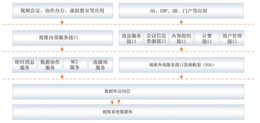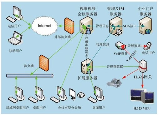 視維系統(tǒng)是一個(gè)基于IP網(wǎng)絡(luò)的綜合業(yè)務(wù)通訊平臺,通過多網(wǎng)絡(luò)接入方式實(shí)現(xiàn)網(wǎng)通、電信、聯(lián)通等用戶間高速互通;通過H.323模塊將企業(yè)內(nèi)部原有的硬件設(shè)備與視維系統(tǒng)鏈接起來,有效的節(jié)約了投資;其他如SIP模塊,短信模塊,固網(wǎng)電話接入等都可以根據(jù)用戶需要進(jìn)行擴(kuò)展。視維系統(tǒng)可以支持分布式視頻服務(wù)器集群,可利用企業(yè)內(nèi)部網(wǎng)絡(luò)或者互聯(lián)網(wǎng)構(gòu)建超大規(guī)模企業(yè)綜合通訊平臺;凇懊嫦蚍⻊(wù)體系架構(gòu)(SOA)”設(shè)計(jì)架構(gòu),實(shí)現(xiàn)很靈活地方便地與其業(yè)務(wù)系統(tǒng)如OA,HR,CRM,