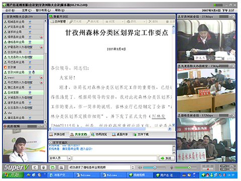 從2006年始林區(qū)引入視維視頻會(huì)議系統(tǒng)組建了森林防火視頻調(diào)度指揮會(huì)議系統(tǒng),會(huì)議系統(tǒng)全面開通之后,林業(yè)局已經(jīng)召開了多次的視頻會(huì)議,方便了會(huì)議精神和底層回報(bào)的上傳下達(dá)。這次除了主會(huì)場(chǎng)外,各縣林業(yè)局,各州屬林業(yè)局單位也通過登陸視維視頻會(huì)議的方式遠(yuǎn)程收看這次工作會(huì)議,認(rèn)真收聽收看許局長做的工作報(bào)告。視維視頻會(huì)議系統(tǒng)為甘孜州林業(yè)局提供了穩(wěn)定的運(yùn)行平臺(tái),通過視頻會(huì)議,不僅實(shí)現(xiàn)日常的會(huì)議溝通,還可以實(shí)現(xiàn)領(lǐng)導(dǎo)與專家的會(huì)商,對(duì)預(yù)警信息、歷史情況、輔助評(píng)估結(jié)論等內(nèi)容進(jìn)行綜合評(píng)估,最終確定森林防火事件等級(jí)和應(yīng)對(duì)措施。