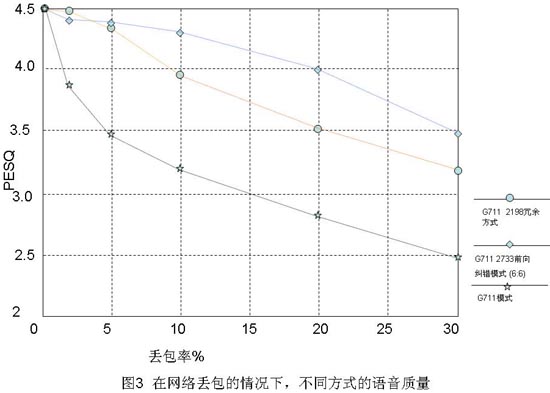 理想的網(wǎng)絡(luò)情況是所有發(fā)送的語音報文都能夠被接收端正常接收。但是IP報文在網(wǎng)絡(luò)上傳遞時,網(wǎng)絡(luò)的個別處理節(jié)點(diǎn)可能會出現(xiàn)處理能力不夠或者帶寬受限制的情況,部分報文可能會被丟掉。雖然IP網(wǎng)絡(luò)上有一些機(jī)制可以在報文丟失的時候重傳丟失報文,但是對實時性要求很高的話音數(shù)據(jù)并不能使用這些機(jī)制。