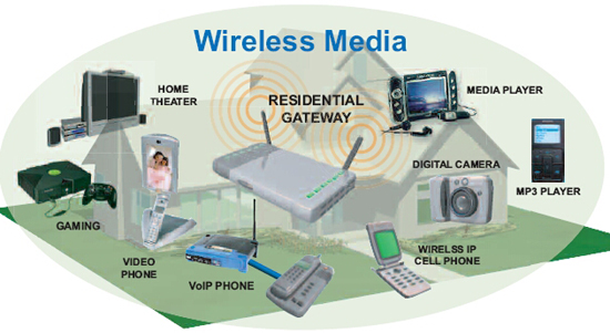 在家中傳送廣播質(zhì)量的視頻將需要住宅網(wǎng)關(guān)整合多種有線和無線技術(shù)、安全特性和服務(wù)質(zhì)量(QoS)能力。住宅網(wǎng)關(guān)需要支持最新的無線連網(wǎng)技術(shù),例如目前的802.11g以及暫露頭角的802.11n、802.11d/e和802.11r標準。多種有線家庭連網(wǎng)技術(shù)也在考慮之內(nèi),所以住宅網(wǎng)關(guān)應(yīng)能支持以太網(wǎng)、同軸電纜多媒體聯(lián)盟(MOCA)、家用電話線網(wǎng)絡(luò)聯(lián)盟(HPNA)、家庭插電聯(lián)盟(HPPA)和通用電力線協(xié)會(UPA)等機構(gòu)推出的有線家庭聯(lián)網(wǎng)技術(shù)。