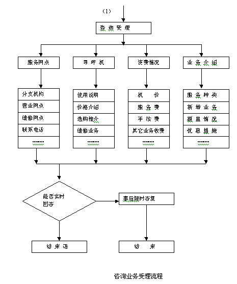 咨詢主要是回答客戶有關(guān)臺(tái)席各項(xiàng)業(yè)務(wù)種類、資費(fèi)標(biāo)準(zhǔn)、服務(wù)網(wǎng)點(diǎn)及優(yōu)惠措施等問題,要求以自編數(shù)據(jù)庫(kù)或業(yè)務(wù)手冊(cè)為基礎(chǔ),實(shí)時(shí)予以回答。一時(shí)無法解釋清楚的,建議客戶留下聯(lián)系電話,將由專人負(fù)責(zé)答復(fù)。