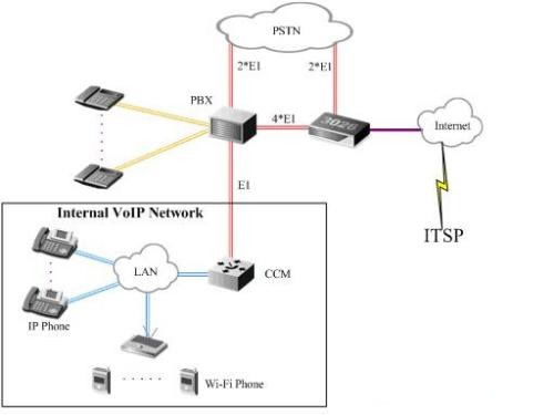 iBG3026,最后在PBX和Ubigate iBG3026之間再開通4條E1中繼,同時,Ubigate iBG3026通過自帶的GE接口接入酒店的辦公局域網,這樣即使出現客房人員使用網絡不規(guī)范的情況發(fā)生,也不會影響語音服務的質量。