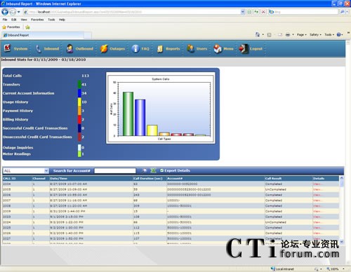 該公用事業(yè)部門很快發(fā)現(xiàn)他們所管理的呼叫量出現(xiàn)很大的變化,尤其是在賬單的支付、信用卡的處理和賬戶史的查詢等方面。2007年1月,公用事業(yè)機(jī)構(gòu)的OnCall系統(tǒng)所管理的報(bào)告日志顯示有2,694個(gè)呼叫,很多天都顯示