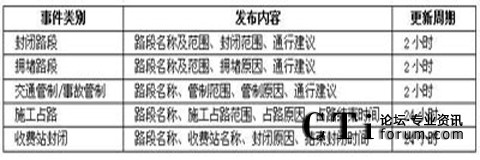即時路況信息發(fā)布主要通過自動語音播報。發(fā)布內(nèi)容建議如下表所示: