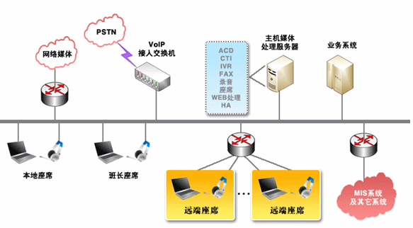 我們可以非常明確的一點(diǎn)是:采用分布式座席的技術(shù),使得遠(yuǎn)端座席與中心座席除了地域上的差異,其它部分完全相同。可以說(shuō)只要網(wǎng)絡(luò)無(wú)極限,座席分布就是無(wú)極限的。
