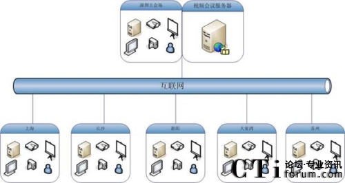 如圖,深圳南山地產(chǎn)視頻會(huì)議系統(tǒng)應(yīng)用規(guī)模為6個(gè)點(diǎn),包括深圳、上海、長沙、惠陽、大亞灣、蘇州。服務(wù)器部署在深圳用來保證香港和內(nèi)地的鏈接效果,服務(wù)器出口帶寬為3M共享,各分會(huì)場(chǎng)通過互聯(lián)網(wǎng)訪問服務(wù)器。在這個(gè)網(wǎng)絡(luò)平臺(tái)上,紅杉樹網(wǎng)絡(luò)會(huì)議所提供的高質(zhì)量音視頻圖像、方便易用的文檔、文件共享數(shù)據(jù)功能,使得南山地產(chǎn)能夠在這個(gè)平臺(tái)上進(jìn)行從桌面討論到會(huì)議室正式會(huì)議等各種規(guī)模的應(yīng)用。在這個(gè)平臺(tái)上,除了進(jìn)行日常例會(huì)、業(yè)務(wù)交流等常見的應(yīng)用之外,業(yè)務(wù)培訓(xùn)、異地招聘等也是經(jīng)常進(jìn)行的內(nèi)容。業(yè)務(wù)人員利用數(shù)據(jù)功能,節(jié)約了以前培訓(xùn)所花費(fèi)的大量精力和時(shí)間,為新項(xiàng)目迅速占領(lǐng)市場(chǎng)掌握了主動(dòng)。