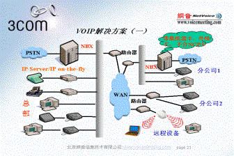 IP電話作為一種新技術(shù),確實令人振奮。它是對傳統(tǒng)電話交換技術(shù)的一次變革:不僅節(jié)省了企業(yè)長途通信成本,這還為遠(yuǎn)程用戶提供對總部的數(shù)據(jù)網(wǎng)絡(luò)、通話系統(tǒng)和信息傳輸服務(wù)相同的接入能力,同時使運行維護方面變的更加快捷、簡便。3COM