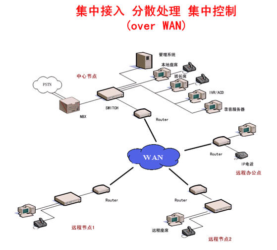 隨著用戶分支機構的不斷發(fā)展壯大,建立一套完全基于IP網(wǎng)絡的分布式的呼叫中心系統(tǒng),正成為企業(yè)全面提升自身客戶服務質量的一條重要途徑。在前幾年的呼叫中心建設熱潮過后,現(xiàn)在的市場越來越趨向于理性,目前的企業(yè)往往都處在轉變之中,如何最大限度地利用現(xiàn)有的網(wǎng)絡資源和已有的設備資源,如何以最低的投資成本獲得最有效的客戶服務手段才是企業(yè)的選擇根本。企業(yè)的需求決定了呼叫中心行業(yè)的發(fā)展方向,網(wǎng)絡化、分布化、經濟化、完全基于IP的華為-3Com NBX呼叫中心平臺越來越受到企業(yè)的歡迎,已經成為企業(yè)構建IP分布式客戶服務系統(tǒng)的首選品牌。基于網(wǎng)絡化的NBX呼叫中心: