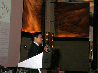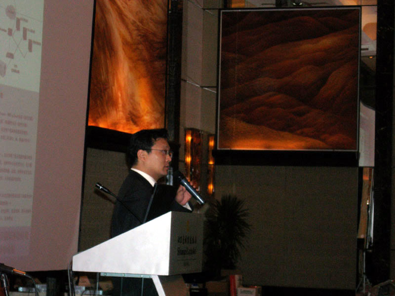 。。2005年8月24日,3Com NBX語音通訊產(chǎn)品推廣會(huì)于北京香格里拉大酒店成功舉辦。圖為3Com中國地區(qū)高級(jí)市場經(jīng)理朱海翔闡述3Com產(chǎn)品與市場(點(diǎn)擊察看大圖)