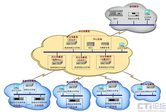 秦皇島河北海事局直屬交通部海事局,對河北沿海水域和港口的各項水上安全監(jiān)督管理工作實行垂直管理。近年來,隨著港口物流業(yè)務量呈幾何級增長,尤其是北京奧運會的舉辦,需要加強河北海事局與各機構之間的協(xié)作,人員之間面對面的交流也越來越頻繁,依據(jù)國家海事局信息化建設要求,建設河北海事局視頻會議系統(tǒng),要求提供高質量的網絡視頻會議效果(720p),具有高可靠、高穩(wěn)定,易用性和可管理性強等特點。