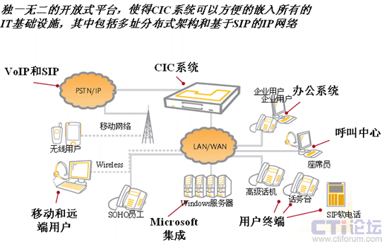 可以方便的與不同的第三方網(wǎng)絡設備,用戶終端等集成,預置的Microsoft插件使得CIC可以和Microsoft