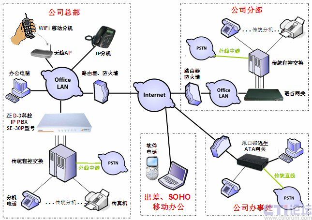 采用SE30系列的IP語音媒體交換機(jī)搭建辦公語音通信平臺(tái),簡(jiǎn)化了原先繁雜的語音通信系統(tǒng),可以輕而易舉地集成到用戶現(xiàn)有的網(wǎng)絡(luò)中,節(jié)省了大量的網(wǎng)絡(luò)改造成本及通訊費(fèi)用。部署快捷、管理方便、功能強(qiáng)大、應(yīng)用靈活、降低成本等優(yōu)勢(shì)明顯;特別適用于出差、家庭辦公、移動(dòng)辦公頻繁的現(xiàn)代中小型企業(yè)用戶,極容易實(shí)現(xiàn)多點(diǎn)異地VoIP組網(wǎng)應(yīng)用。