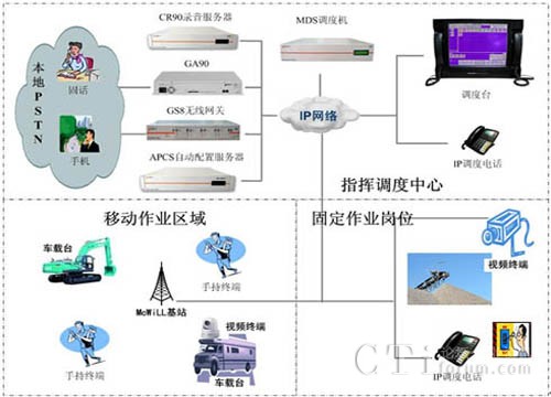 MDS系統(tǒng)可以應用于各種作業(yè)現(xiàn)場的指揮調(diào)度, MDS系統(tǒng)不但支持系統(tǒng)基本的語音通信,調(diào)度中心可以通過視頻、數(shù)據(jù)、文本消息等綜合的多媒體方式與作業(yè)人員進行通信交互,滿足各種復雜環(huán)境下的指揮調(diào)度需求。系統(tǒng)可以通過GS8無線網(wǎng)關(guān)、GA90 E1/T1網(wǎng)關(guān)等設備實現(xiàn)與PSTN網(wǎng)絡的互聯(lián),滿足與手機和固話網(wǎng)絡用戶接入需要。豐富的終端類型可以滿足用戶對固定崗位、移動人員及車輛設備等不同環(huán)境的使用需求,根據(jù)人員崗位工作性質(zhì)可以配置IP調(diào)度話機、手持終端和車載臺等終端。