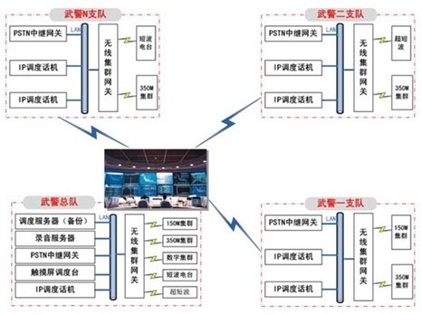 - 通過(guò)調(diào)度臺(tái)對(duì)系統(tǒng)內(nèi)現(xiàn)有各種通信終端進(jìn)行統(tǒng)一、混合調(diào)度。