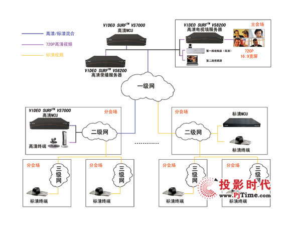 天地陽光通信技術(shù)(北京)有限公司全新推出VIDEO SURFTM 系列全線高清產(chǎn)品,其中高清視頻會議多點控制單元MCU,通過專門為級聯(lián)會議推出的業(yè)內(nèi)獨創(chuàng)的互控級聯(lián)模式,解決了上述用戶需求問題。通過級聯(lián)方式極大地擴充了視頻會議系統(tǒng)的容量,滿足超大型高清視頻會議的需求。通過分上、下級的分級組網(wǎng)方式,滿足用戶分級管理,節(jié)約帶寬等需求。級聯(lián)過程中一個管理員要操作十幾臺MCU,或者十幾臺MCU