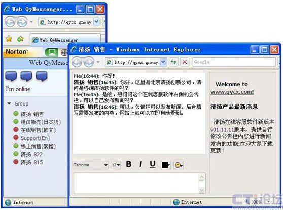 Web即時通信,對任意地方的客戶,是用IE即可以訪問"對話"。所以,它虛擬出一個銷售人員的接觸途徑。