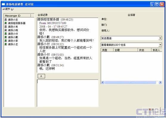 有了短信互動,那么給出差在外的員工發(fā)通知就容易了。同時,外出的員工也可以隨時將信息發(fā)回給企業(yè)內(nèi)部的同事,甚至還可以同時通知到多人。這就是企業(yè)即時通信的組播能力也被發(fā)揮出來。