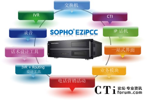 SOPHO EZiPCC(簡稱EZiPCC) 基于IP為核心技術(shù)的平臺,以All-In-One 的設計理念,提供一體化呼叫 中心解決方案,其中包含了呼叫中心所需要的基本話務系統(tǒng),例如:PBX,IVR,Recording,CTI