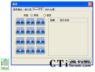 2、菜單(Menu)組件:是IVR的語音菜單組件,不同的語音菜單對應支持不同的業(yè)務功能。