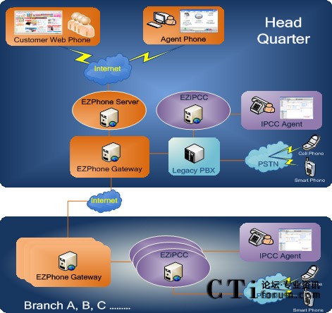 ,CRM和FAX等。大量的節(jié)省了呼叫中心建置的成本。而對于企業(yè)端,現(xiàn)有的交換機或網(wǎng)絡設備可以繼續(xù)使用,EZiPCC可以無縫嵌入到企業(yè)環(huán)境中去,達到相輔相成的效果。語音與數(shù)據(jù)共享網(wǎng)絡也降低了企業(yè)網(wǎng)絡建設的成本,不同地點的分公司也可藉由EZiPCC系統(tǒng)的布署,達到降低話務成本和呼叫中心共享的目