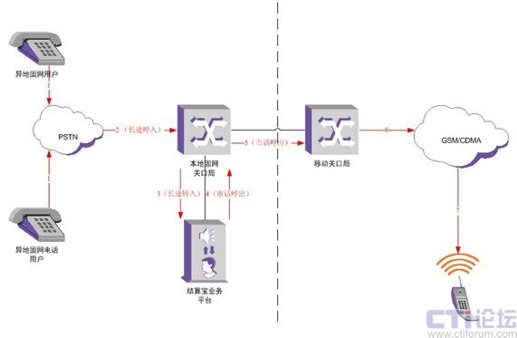 異地本網(wǎng)(例如太原鐵通)用戶呼叫本地移動(dòng)(例如杭州移動(dòng))用戶,系統(tǒng)會(huì)經(jīng)過(guò)杭州的關(guān)口局將該呼叫送至移動(dòng)的關(guān)口局。結(jié)算寶業(yè)務(wù)平臺(tái)掛接在本地關(guān)口局上,攔截這類呼叫,并將長(zhǎng)途號(hào)碼替換為本地號(hào)碼,然后通過(guò)本地關(guān)口局轉(zhuǎn)呼出去。