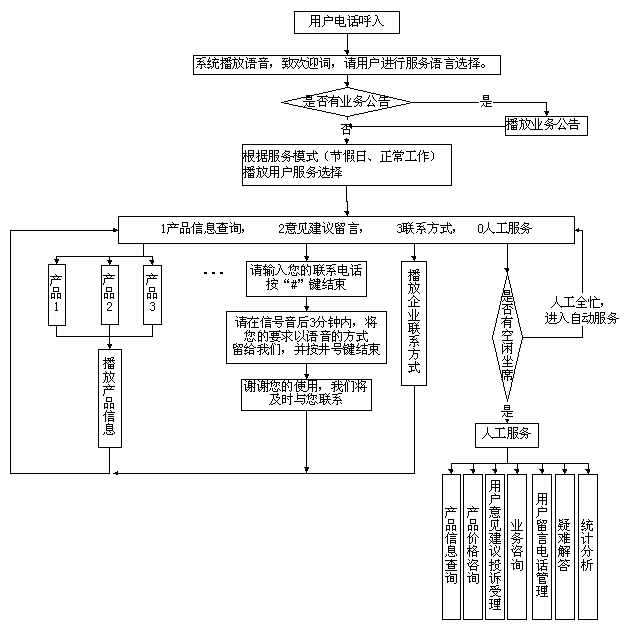 通過電腦語音引導,提示按鍵的方式,用戶通過電話、傳真等可自動獲取企業(yè)的相關信息,如公司介紹、聯(lián)系方式、產品信息介紹等,以及對產品的投訴建議,留言,留聯(lián)系電話等;