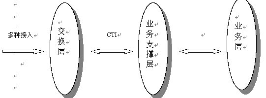從技術角度上說,呼叫中心系統(tǒng)由三部分組成:交換層、業(yè)務支撐層和業(yè)務層。