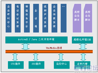 - UniMedia中間件中CTI插件/SYS插件/IDE流程/座席/監(jiān)控/話單/媒體可實(shí)現(xiàn)全分布
