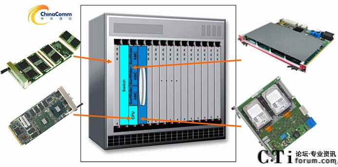 ATCA的背板: ATCA的背板采用雙星型結(jié)構(gòu),背板的網(wǎng)絡(luò)吞吐量是20G,如果業(yè)務(wù)需要更高的媒體流量,背板可以改用全網(wǎng)狀結(jié)構(gòu),設(shè)計流量達到40T.