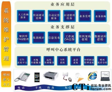 系統(tǒng)通過人工坐席、自助語音服務(wù)、電子郵件、傳真、即時聊天工具等方式,受理客戶所申辦的快遞業(yè)務(wù),生成派單并轉(zhuǎn)發(fā)給相應(yīng)部門進行處理。待處理結(jié)果通過網(wǎng)絡(luò)返回到企業(yè)呼叫中心后,客服人員以電話、傳真、短信息、電子郵件等方式回復(fù)客戶?蛻粢部呻S時通過本系統(tǒng)了解所申辦業(yè)務(wù)現(xiàn)處于哪一環(huán)節(jié)及哪一部門所處理。系統(tǒng)的來電彈跳功能可以使客服人員第一時間獲知來電者的身份背景資料,迅速了解其歷史消費信息、詳細(xì)地址等等資料。