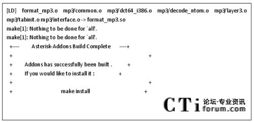 6.現(xiàn)在已經(jīng)編譯完 asterisk , 接下來開始編譯 asterisk-addons , 命令和編譯zaptel的基本一致: