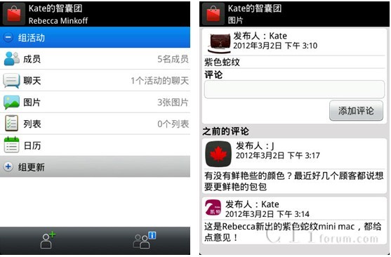 CTI論壇(ctiforum)3月19日消息(記者 浩宇): 近日,國(guó)內(nèi)第一家獨(dú)立設(shè)計(jì)師手袋精品店——?jiǎng)P特周手袋(www.katezhou.com)的創(chuàng)始人Kate及其核心團(tuán)隊(duì)試用了黑莓智能手機(jī)及服務(wù),并且利用黑莓的獨(dú)有功能解決了不少經(jīng)營(yíng)中的問(wèn)題。