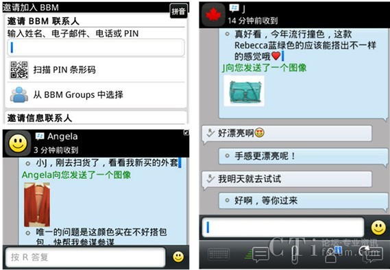 凱特周手袋為能迎合中國(guó)消費(fèi)者的品位需求,在引進(jìn)獨(dú)立設(shè)計(jì)師品牌的手袋時(shí),都要充分吸取分布于國(guó)內(nèi)各地的導(dǎo)購(gòu)人員的建議,這就形成了Kate極其信賴(lài)的智囊團(tuán)。然而,智囊團(tuán)的應(yīng)用卻極大的受到地域限制:當(dāng)Kate在美國(guó)決定是否引進(jìn)某款手袋時(shí),在北京的小J、在上海的小Q以及在深圳的小M很難及時(shí)的加入到討論中。直到她們?nèi)渴褂昧撕谳悄苁謾C(jī)和服務(wù),其中包括的一款即時(shí)通訊工具BlackBerry Messenger(BBM)為智囊團(tuán)發(fā)揮作用提供了便利的通訊條件。BBM支持不同國(guó)家運(yùn)營(yíng)商的黑莓用戶(hù)自由的互相添加為好友、聊天、分享圖片,其群組功能還支持分享語(yǔ)音文件、日歷和列表等。
