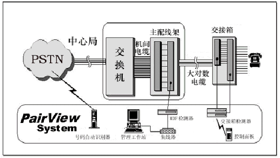8. 可為電信公司帶來良好的收益和長(zhǎng)遠(yuǎn)的經(jīng)濟(jì)利益 本地環(huán)路測(cè)試系統(tǒng)(PairView)的構(gòu)成如下:
