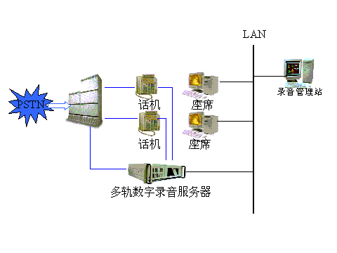 一、 錄音系統(tǒng)概念: 在通訊領(lǐng)域中,電話網(wǎng)范圍已經(jīng)普及到中國(guó)的各個(gè)角落成為主要的通信手段,通過(guò)電話人們可以相互溝通,傳達(dá)信息,通話過(guò)程中錄制有效的信息越來(lái)越得到各企事業(yè)的重視。在商務(wù)服務(wù)領(lǐng)域,各行業(yè)建設(shè)了客戶服務(wù)中心既"呼叫中心"代替?zhèn)鹘y(tǒng)的柜臺(tái)業(yè)務(wù),通過(guò)錄音記錄業(yè)務(wù)代表的服務(wù)質(zhì)量對(duì)其進(jìn)行監(jiān)督和考核以便提高企業(yè)的名譽(yù);在政府安全部門對(duì)一些重點(diǎn)監(jiān)控對(duì)象的往來(lái)通信進(jìn)行錄音和實(shí)時(shí)監(jiān)聽,以及對(duì)某些重要指令錄音。