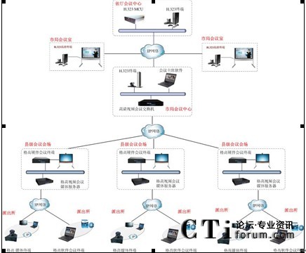 公安視頻會(huì)議系統(tǒng)建設(shè)主要依托現(xiàn)有的寬帶IP網(wǎng),建設(shè)從市局到各縣區(qū)分局及各鄉(xiāng)鎮(zhèn)派出所之間的交互式視頻會(huì)議系統(tǒng),最終建成的系統(tǒng)要實(shí)現(xiàn)全省公安系統(tǒng)每個(gè)點(diǎn)都能互通。