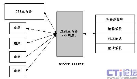 數(shù)據(jù)接口采用三層C/S結(jié)構(gòu),通過構(gòu)建功能強(qiáng)大的應(yīng)用服務(wù)器,把呼叫中心的數(shù)據(jù)流與燃?xì)夤究蛻粝到y(tǒng)、營業(yè)系統(tǒng)、搶修系統(tǒng)和燃?xì)庹{(diào)度系統(tǒng)結(jié)合起來,充分利用了已有系統(tǒng)標(biāo)準(zhǔn)的數(shù)據(jù)接口,實(shí)現(xiàn)對后臺數(shù)據(jù)庫的訪問。如圖2