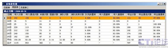 主要考察系統(tǒng)分項業(yè)務(wù)指標(biāo),如中繼線、分機(jī)、座席員、業(yè)務(wù)組等,便于了解系統(tǒng)運行狀況