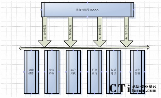 客戶利用電話、傳真等撥打某一特服號碼(如8xxxx)進入客戶服務(wù)中心系統(tǒng),本系統(tǒng)依托各類業(yè)務(wù)技術(shù)支持系統(tǒng)和網(wǎng)絡(luò)系統(tǒng),通過人工受理或自動語音服務(wù)等方式全天24小時不間斷地為客戶提供各種服務(wù),形成了對外服務(wù)于客戶的無形窗口,對內(nèi)管理、分析、決策相結(jié)合的客戶服務(wù)中心。