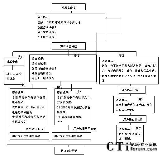 CTI論壇(ctiforum)07月10日消息: 12345政府熱線,是一個(gè)建立在開放的系統(tǒng)平臺(tái)之上,采用全中文、圖形化交互式的操作界面,提供開放的接口,能與其他信息、服務(wù)系統(tǒng)連接的系統(tǒng),該系統(tǒng)的設(shè)計(jì)開發(fā)具有先進(jìn)性、安全可靠性、可擴(kuò)充性、易用性、友好性等特點(diǎn)。通過政府12345熱線的工作人員在信息系統(tǒng)的平臺(tái)上以7X24小時(shí)方式運(yùn)行工作。在該系統(tǒng)工程的設(shè)計(jì)上還要充分考慮項(xiàng)目實(shí)施后可能發(fā)生的突發(fā)性規(guī)模放大量,為未來的發(fā)展趨勢(shì),預(yù)留足夠擴(kuò)容空間,并考慮到由此可能造成的對(duì)系統(tǒng)架構(gòu)、技術(shù)實(shí)施方案、資源配置等所進(jìn)行的相應(yīng)改動(dòng),及如何提供開發(fā)工具去滿足不同時(shí)期的需要。