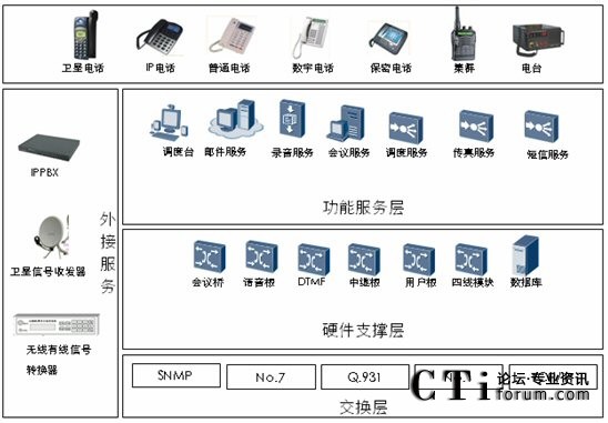 由HXD09-II 智能語音交換機(jī)、短信子系統(tǒng)、無線接入系統(tǒng)、短波、超短波系統(tǒng) 接入及預(yù)留的各類接口組成。