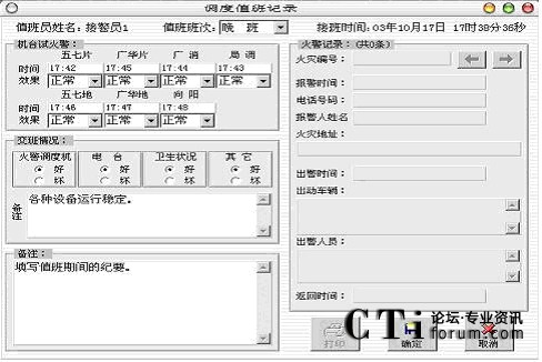 - 電話調(diào)度功能: 接警后,可撥打有關(guān)科室、消防中隊的電話進(jìn)行調(diào)度指揮。并將每次電話形成記錄存放在電腦中。 三方通話功能:接警時可同時接通某科室、消防中隊等聯(lián)動單位,實現(xiàn)報警方、接警方、出警方三方通話功能。