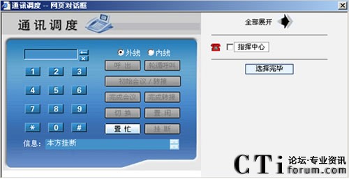 通話(huà)過(guò)程中擁有權(quán)限的班長(zhǎng)坐席可以對(duì)來(lái)電進(jìn)行強(qiáng)拆、強(qiáng)插或轉(zhuǎn)移給任何一部分機(jī)、外部電話(huà)、手機(jī),而無(wú)須讓對(duì)方再撥打一次電話(huà) |